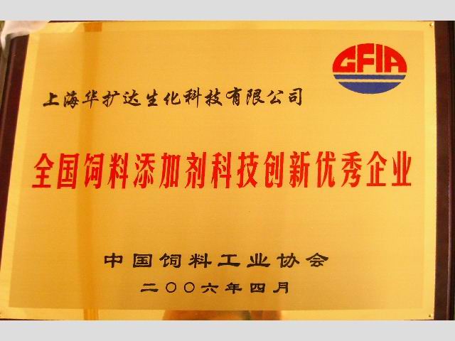 2006年4月12日,上海華擴(kuò)達(dá)生化科技有限公司在由中國飼料工業(yè)協(xié)會主辦的第九屆全國飼料添加劑大會上獲得"全國飼料添加劑科技創(chuàng)新優(yōu)秀企業(yè)"證書