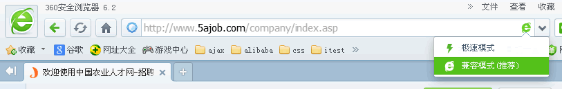 2.360瀏覽器目前分為360安全瀏覽器和360極速瀏覽器兩種,兩種都有使用極速模式、兼容IE模式,建議您使用IE兼容模式(圖1)。