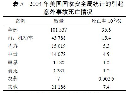 由于缺乏對(duì)農(nóng)藥正確認(rèn)識(shí),一旦出現(xiàn)意外事故,不少人往往會(huì)認(rèn)為農(nóng)藥是主要禍害,實(shí)際上這是一種誤解。表5 和表6 為美國(guó)統(tǒng)計(jì)引起意外事故的情況。