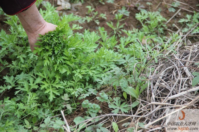 采蒿子,掐其頂端叫嫩部分即可。
