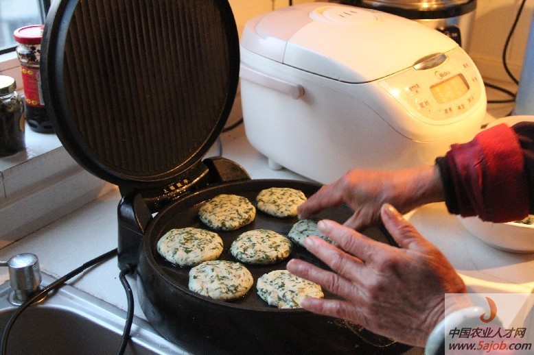 將和好的粉做成一個(gè)個(gè)餅放電餅鐺(以前沒(méi)有這玩意就用鐵鍋,一樣的),