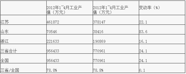工業(yè)總產(chǎn)值同比增長22.2%今年1~4月份我國化學(xué)農(nóng)藥現(xiàn)價工業(yè)總產(chǎn)值為740.35億元,去年同期605.70億元,同比增長22.2%。排在前三位的分別是江蘇、山東和浙江,三省的工業(yè)總產(chǎn)值和為454.11億元,三省產(chǎn)值和占全國總產(chǎn)值的61.3%。