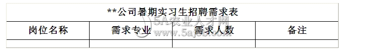 3.暑期實(shí)習(xí)生。本次就業(yè)市場(chǎng)同時(shí)面向大三年級(jí)開(kāi)展暑期實(shí)習(xí)雙選會(huì),請(qǐng)有招聘暑期實(shí)習(xí)生的單位,在上傳招聘簡(jiǎn)章中特別注明是否需求大三暑期實(shí)習(xí)生,如有需要,請(qǐng)?zhí)顚?xiě)下表后放入企業(yè)簡(jiǎn)章中一塊上傳。