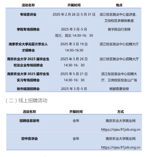 1、南京農(nóng)業(yè)大學(xué)就業(yè)網(wǎng),各單位可自行根據(jù)流程注冊發(fā)布招聘信息、申請宣講會及招聘會;